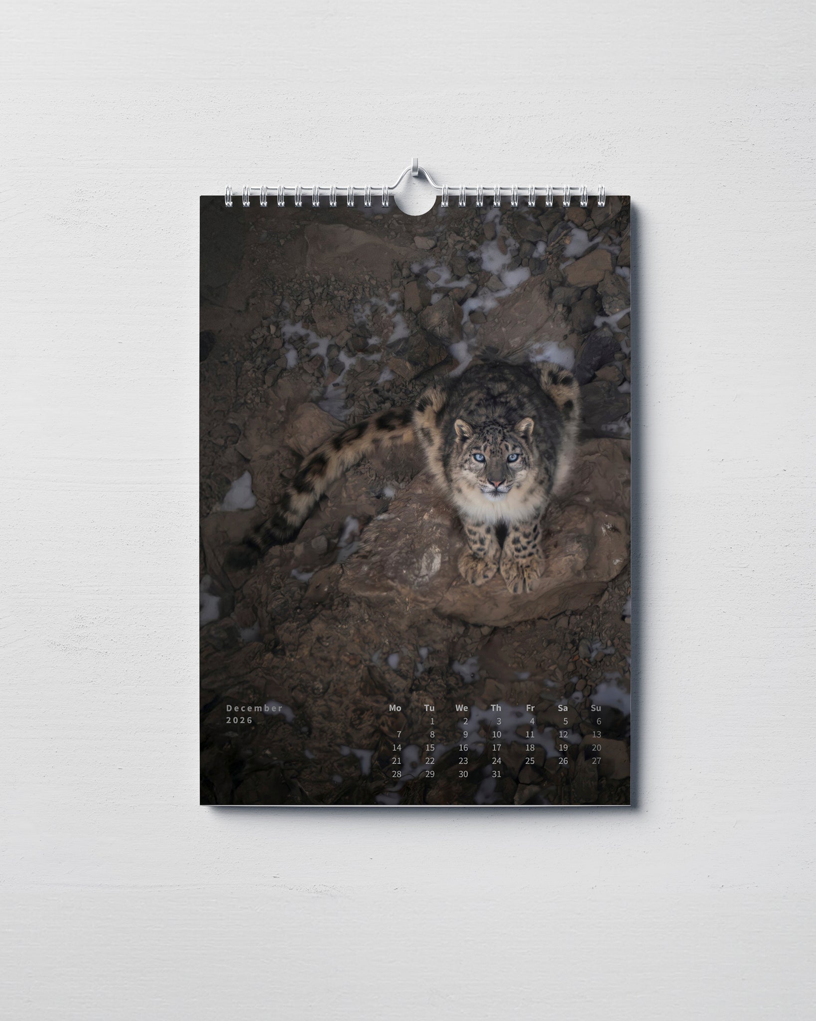 Ciascun calendario dispone della classica rilegatura a spirale e un gancio fisso collegato ad essa in modo da permetterne una facile collocazione sulla parete.